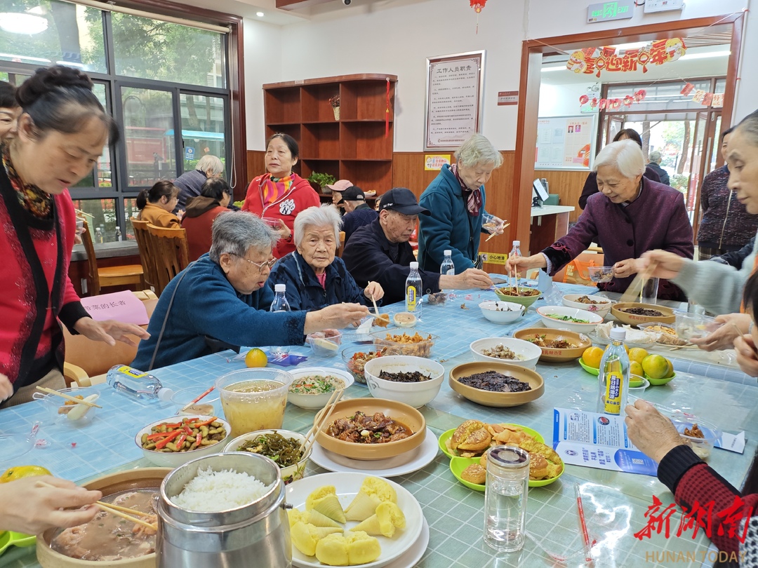 新湖南客户端10月29日讯(通讯员 贺亚利 宋畅)“来尝尝我做的梅菜扣肉!”“这个凉拌海带真爽口!”10月28日,在长沙市雨花区委社会工作部的统筹指导下,韶山路社区新时代文明实践站第四网格的居家养老服务中心内香气四溢、笑语盈盈,为庆祝重阳佳节,社区开展了一场以“邻里共飨百家宴 重阳敬老情意浓”为主题的百家宴活动。居民们带着自家的拿手菜欢聚一堂,在共享美食的同时,也收获了不一样的“大礼包”。