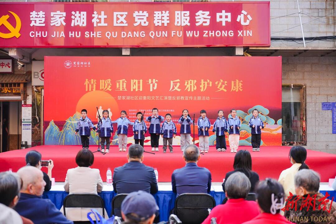 新湖南客户端10月29日讯(通讯员 王志高)秋阳和煦,鼓乐喧天。10 月28日,长沙市开福区捞刀河街道楚家湖社区中心广场被欢声笑语包裹,一场集文艺展演、反邪、医保政策宣传与公益服务于一体的“情暖重阳节 反邪护安康”主题活动在此温情启幕。社区老年人、志愿者、孩童等两百余人齐聚,在敬老氛围中筑牢反邪防线,让重阳暖意与平安理念深度交融。