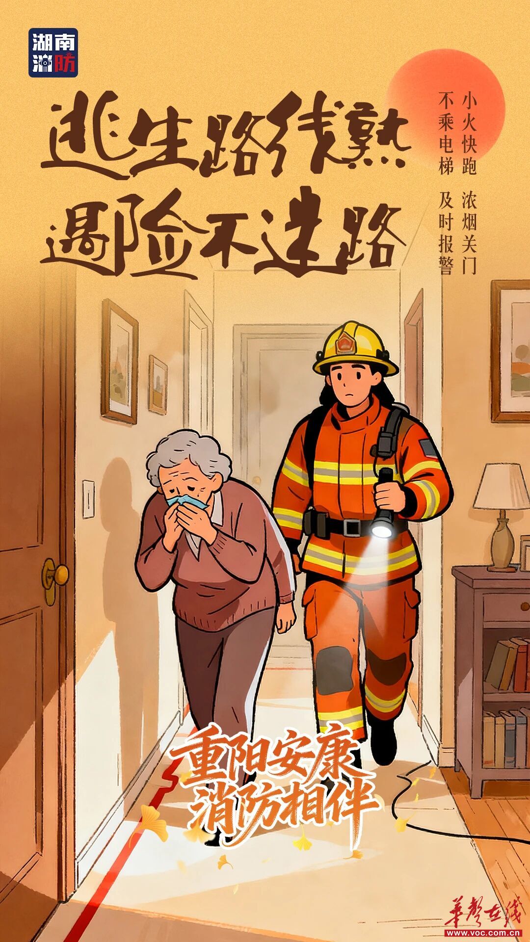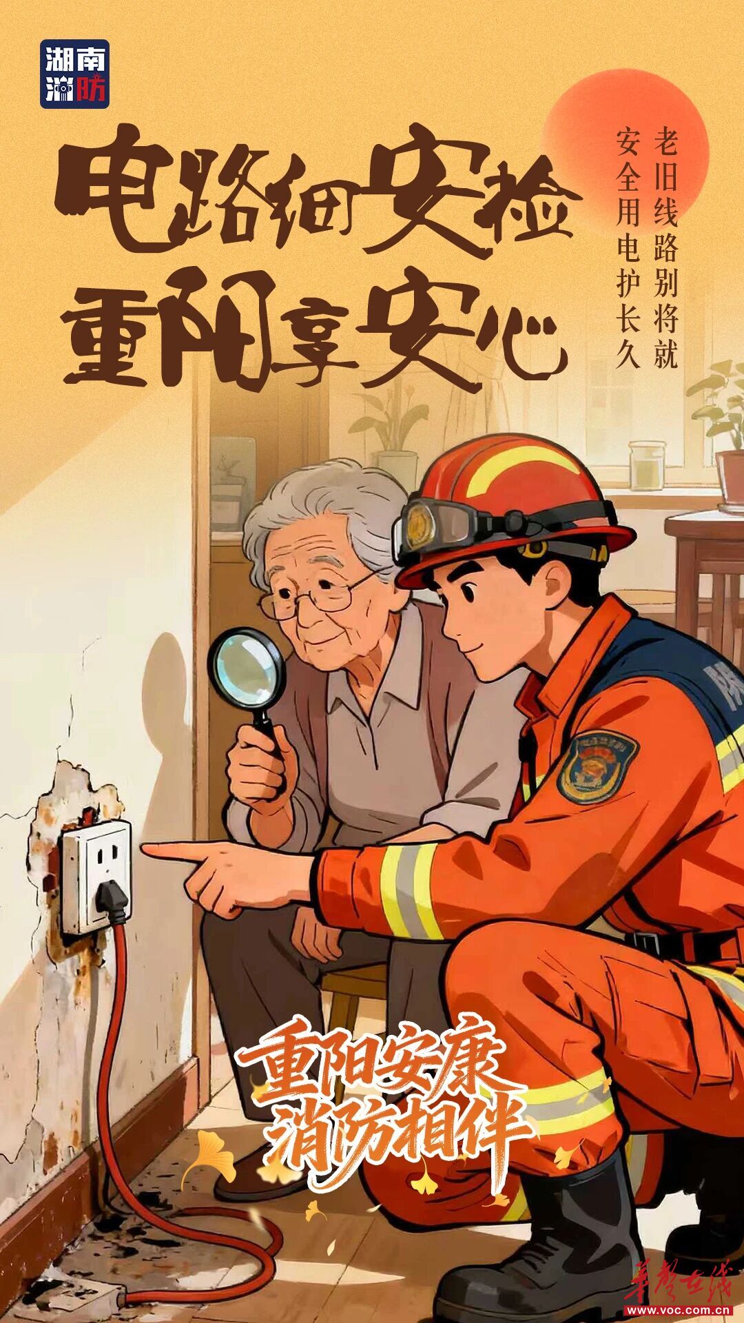 重阳秋暖,平安最重。今日又逢重阳佳节,在陪伴长辈感受秋意的同时,千万别忘记消防安全是守护家人最好的方式。让我们用一套手绘海报点亮消防明灯,把平安作为最贴心的礼物送给挚爱的家人。