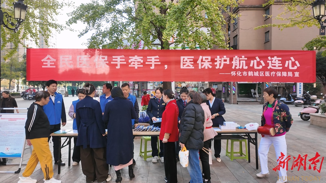 湖南日报·新湖南客户端10月29日讯(通讯员 黄孝洁)10月28日上午,鹤城区医保局、区税务局携手区妇幼保健院、城南街道以及中国移动鹤城分公司、中国人寿,在盛世华都广场开展全民参保集中宣传月活动,将医保政策送到群众身边。
