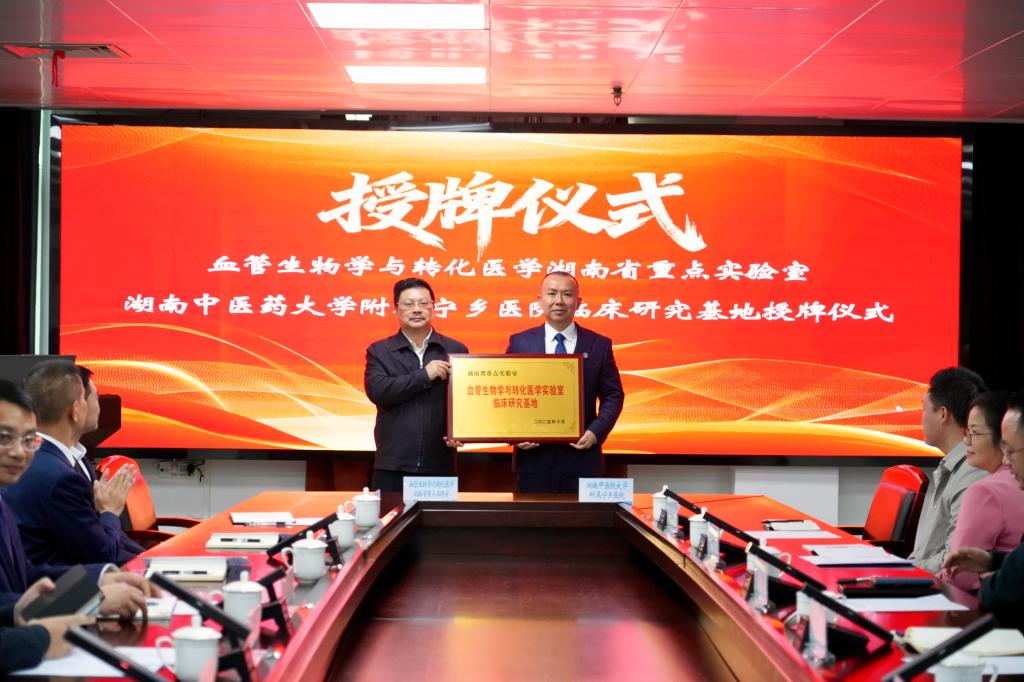 在宁乡市人民医院,戴爱国一行出席“血管生物学与转化医学湖南省重点实验室—湖南中医药大学附属宁乡医院临床研究基地”授牌仪式。该基地的落地,是湖南中医药大学与宁乡市人民医院深化合作的重要举措,将有力推动血管生物学与转化医学的临床研究与成果转化,为提升区域医疗服务水平注入新动力。