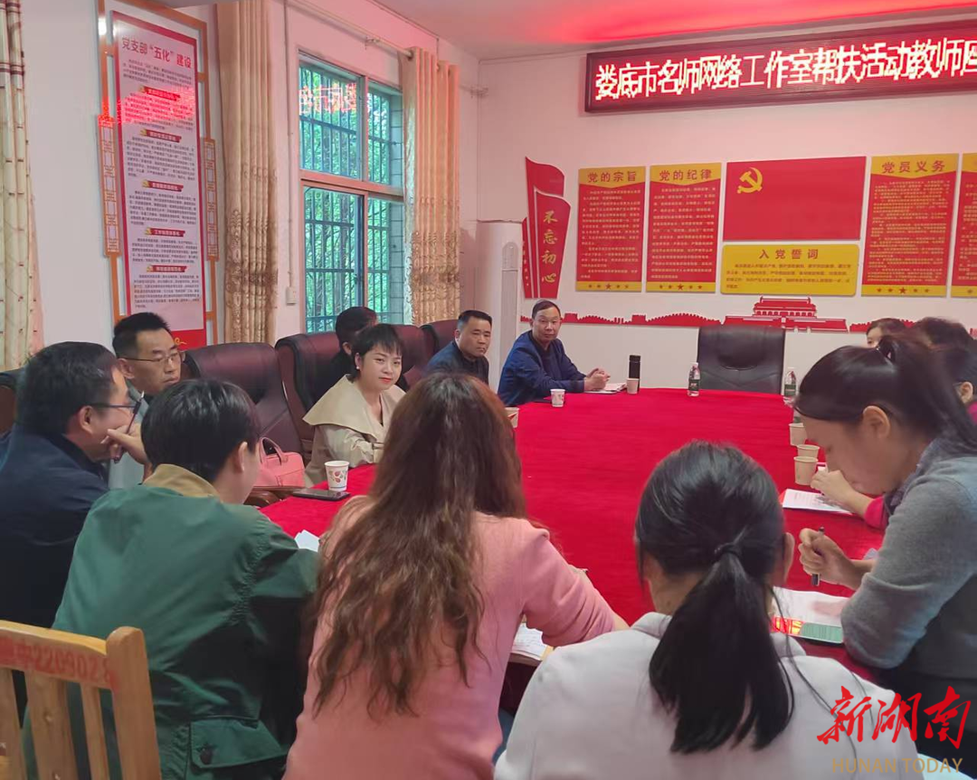 新湖南客户端段10月29日讯(通讯员 周永禧 王玖华)10月28日,娄底市名师网络工作室帮扶活动教师座谈会在双峰县第四中学举行。娄底市电教馆副馆长毛新琼、工会副主席刘胜利、双峰县电教中心主任王金宇、双峰四中党总支书记谭乾坤及该校多名青年教师齐聚一堂,围绕工作室近一年对双峰四中的对口帮扶活动,与青年教师展开深入交流探讨。