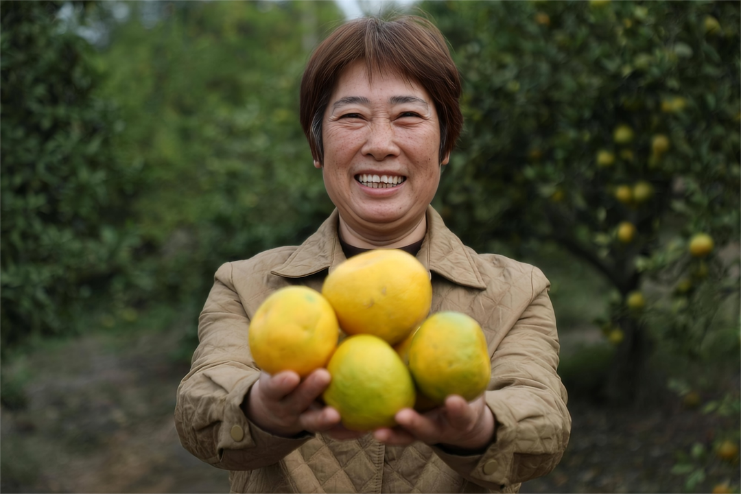 目前,周梅平承包的水果种植面积有60余亩,涵盖皇帝柑、冰糖橙、清香橘、沃柑、柚子等多个品种的水果,从9月一直可以采摘到次年2月份左右,皮薄、汁多、甜度高、口感好的柑橘深受广大收购商及消费者的青睐,通过分批采收、分级销售、错峰销售,达到优果优价,实现昔日的荒坡瘠地披上绿装、结出“金果”,成为村民增收致富的“幸福果”。