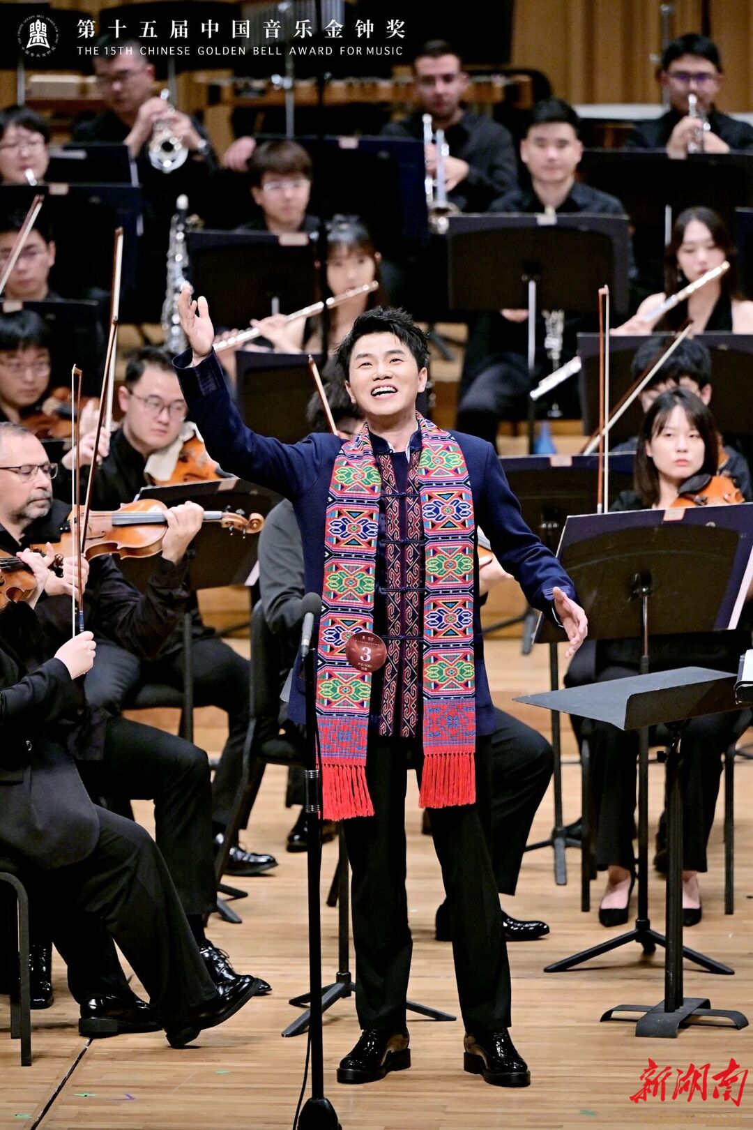 湖南日报·新湖南客户端10月30日讯(记者 上官智慧 通讯员 张思)10月28日晚,第十五届中国音乐金钟奖声乐(民族)决赛现场,随着《棒棒捶在岩板上》的最后一个音符落下,吉首大学副教授郁留成的演唱赢得全场持久掌声。他凭借三首桑植民歌斩获第三名,以 96.86 分的成绩将这一国家级非遗带入中国音乐最高殿堂,更开创了金钟奖史上连续演唱同一地域民歌的先例。