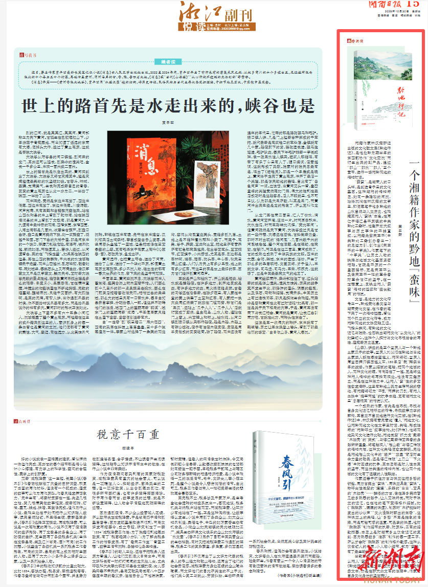 半载黔行,终成作家的一生修行。林汉筠以湘人“蛮味”追寻跨越地域的精神对话,让《黔地行记》超越文字,成为湘黔文脉交融的珍贵文本,亦是在新大众文艺的浪潮中,作家对自身文化身份的坚定确认。