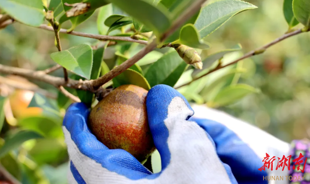 湖南阿萨康源农牧发展有限公司负责人杨丽凡:“我们基地从2012年开始种植油茶,目前种植面积达到300亩。现在油茶林已经初步进入盛果期,一亩地能收到900斤左右鲜果。”