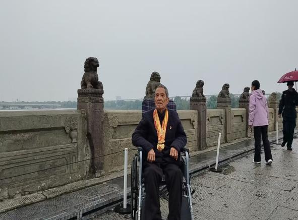 接下来的几天,他参观了中国人民革命军事博物馆、卢沟桥和中国人民抗日战争纪念馆。在博物馆里,他看着最新的武器装备由衷的为祖国感到骄傲,老人凝视着桥栏上形态各异的石狮,静静伫立,仿佛在回望那段刻骨铭心的抗战历史。过往游客纷纷驻足,向老人问好致敬,不少人拿出手机与老人合影,用镜头定格这份跨越时空的敬意。在抗日战争纪念馆内,一件件珍贵文物和还原的历史场景让他回忆起曾经的战斗经历和往昔的战友,不时驻足沉思。现场正在参观的学生与老师们得知他是抗战老兵后,纷纷围拢过来,主动提出合影,希望以这种方式铭记英雄事迹、传承爱国精神。