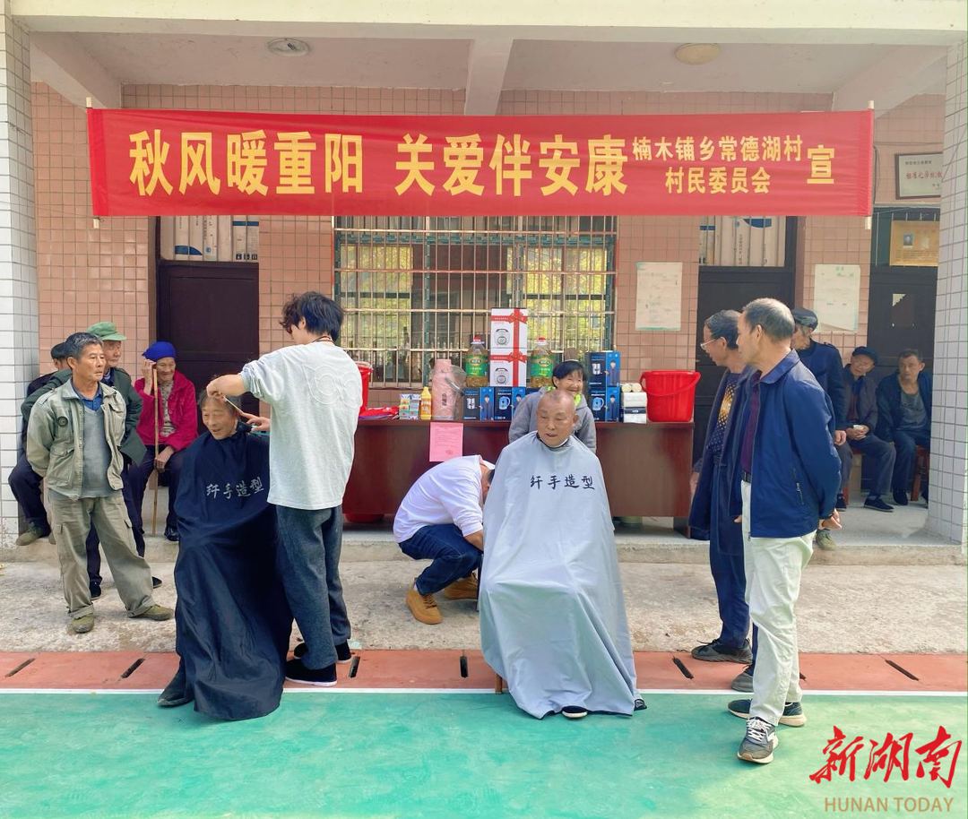 常德湖村在村委会举办“秋风暖重阳,关爱伴健康”活动,邀请沅陵戏曲团队到常德湖进行表演,丰富老人的文化生活,并安排理发师现场为老人免费理发,邀请老人参与“滚篮球”游戏赢取奖品,现场其乐融融的氛围伴随着欢笑声、歌唱声越飘越远。现场准备了许多水果零食供大家食用,活动最后还准备了包饺子活动,老人们吃着热腾腾的饺子,心里也格外暖洋洋。