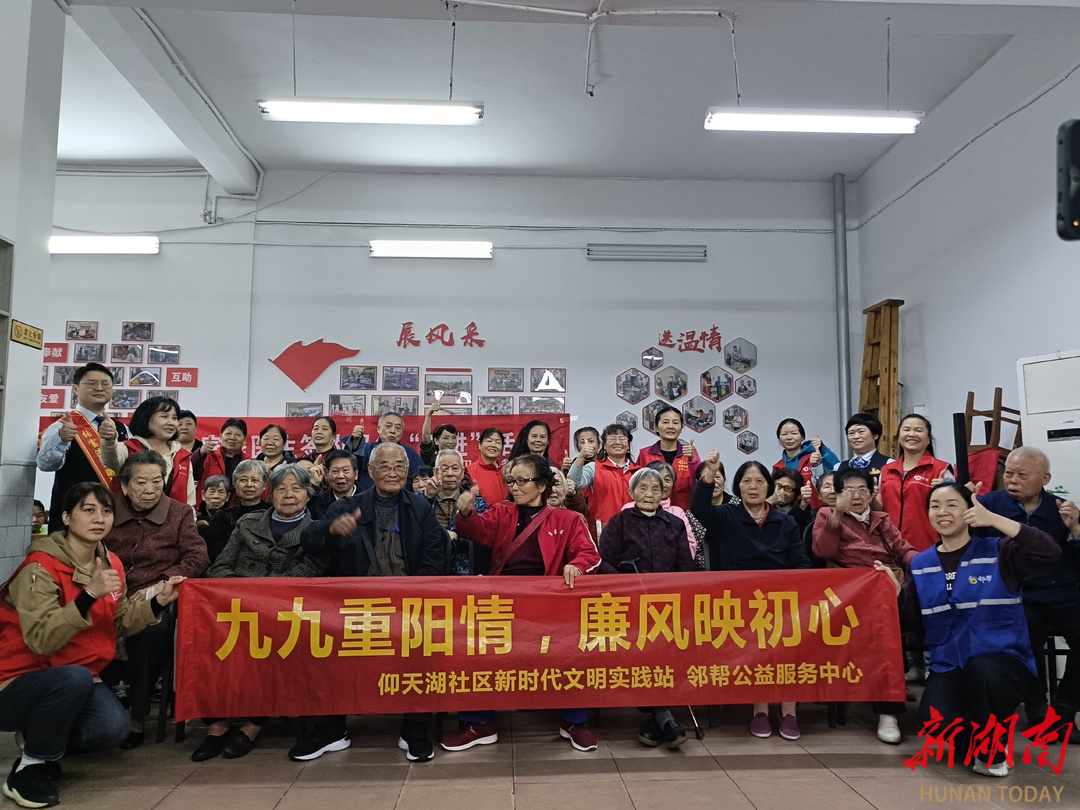 湖南日报·新湖南客户端10月30日讯(通讯员 曹帅)10月29日上午,长沙市天心区裕南街街道仰天湖社区新时代文明实践站联合邻帮公益服务中心、“邻”聚力志愿服务队、建设银行南湖路支行、裕南街街道社工站共同开展“九九重阳情,廉风映初心”主题活动。