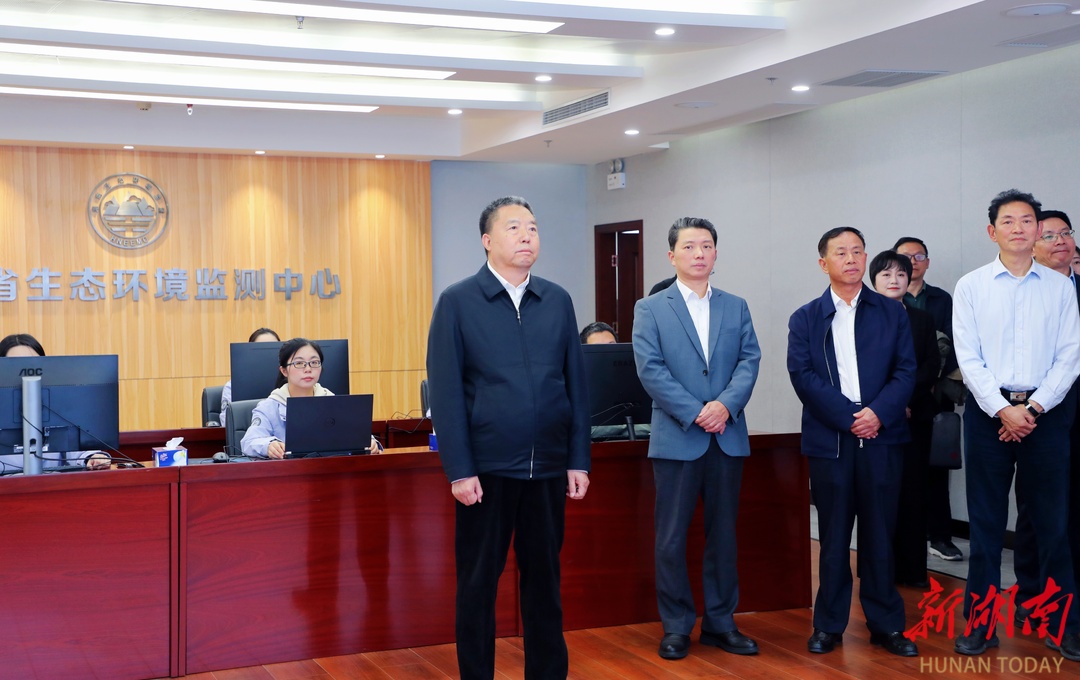 在省生态环境监测中心,调研组一行考察了湖南省空气质量一张图展示平台和湖南省环境空气质量预警预报决策支持平台,深入了解全省大气环境监测、大气监测平台建设、污染预警预报、重污染天气应对等情况。