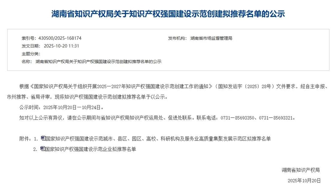 湖南日报·新湖南客户端10月30日讯(通讯员 彭佳欣)日前,湖南省知识产权局发布《关于知识产权强国建设示范创建拟推荐名单的公示》。其中,醴陵华鑫电瓷科技股份有限公司和湖南阳东电瓷电气股份有限公司入选“国家知识产权强国建设示范企业”推荐名单。