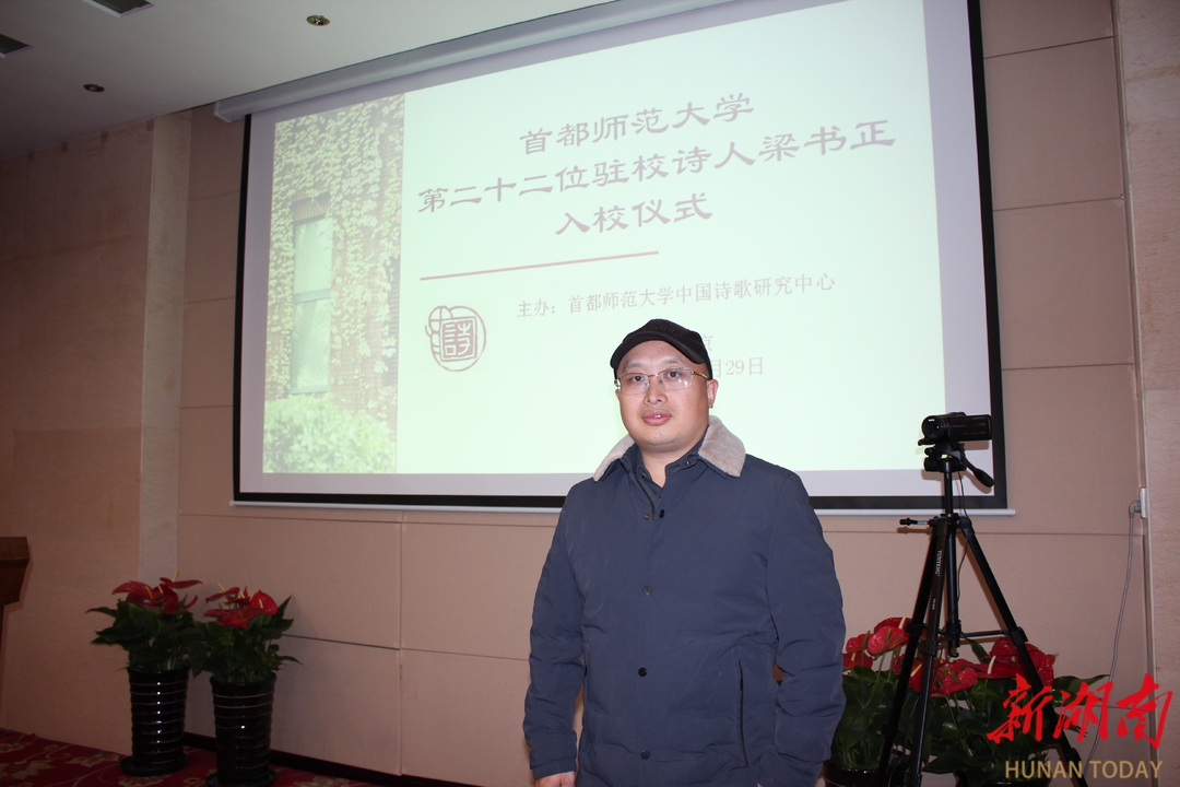 湖南日报·新湖南客户端10月31日讯(全媒体记者 杨元崇 通讯员 袁磊)第二十二届华文青年诗人奖得主、湘西土家族苗族自治州花垣县青年诗人梁书正,入驻首都师范大学中国诗歌研究中心。10月29日下午,该校为其举行“第二十二位驻校诗人入校仪式”。驻校诗人这一举措在中国诗歌界与教育界产生广泛影响。