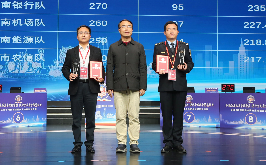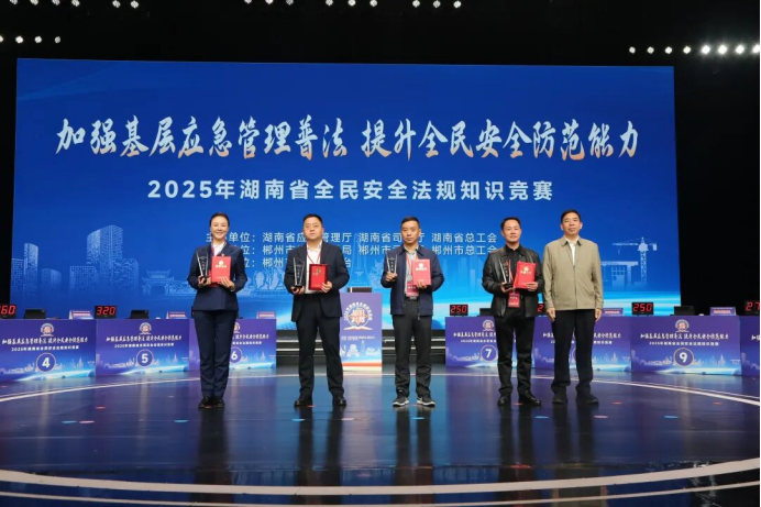10月28日,“加强基层应急管理普法 提升全民安全防范能力”2025年湖南省全民安全法规知识竞赛决赛在郴州举行。此次活动由省应急管理厅、省司法厅、省总工会联合主办,通过“以赛促学、以学促用”,有效推动安全法规知识普及,切实提升基层应急能力和全民安全素质,营造“人人讲安全、个个会应急”的浓厚氛围。