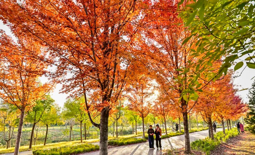 这里集中种植了近600株银红槭,形成了规模可观的红叶观赏带。