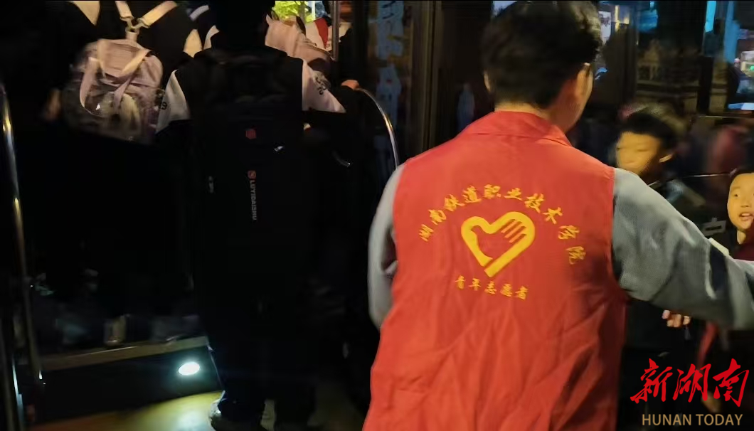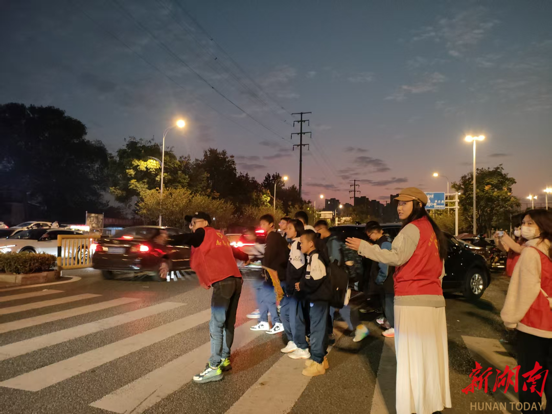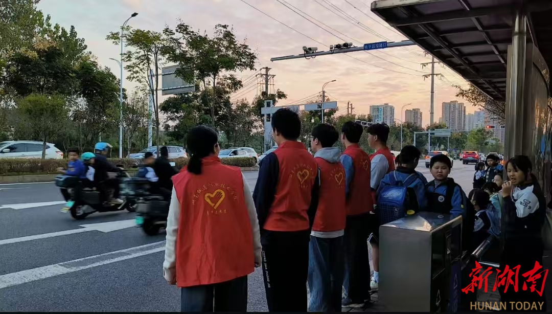 在长郡云龙实验学校门口,身着红色马甲的志愿者们成为最醒目的“守护者”。他们分散在各个斑马线两端,一边挥手引导过往车辆减速礼让,一边牵起低年级学生的手,护送他们安全穿过马路。在志愿者们的引导下,原本略显混乱的公交站台变得井然有序,学生们有序登车的场景,成为暮色中城市街头一道温暖的风景线。