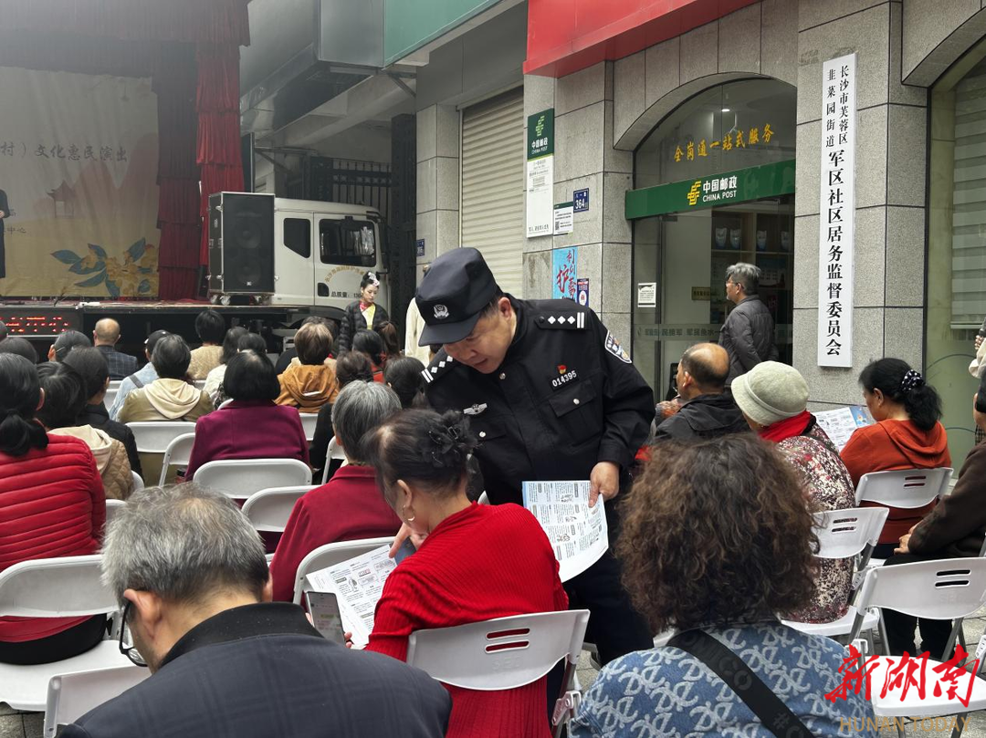 新湖南客户端10月31日讯(通讯员 刘艳)为增强居民防骗意识,构建安全和谐的社区环境,10月31日,长沙市芙蓉区韭菜园街道军区社区开展“全民反诈·共筑平安”为主题防诈宣传活动,通过发放宣传资料、播放警示教育片、现场答疑解惑等形式,为居民送上“防骗锦囊”,筑牢反诈安全屏障。