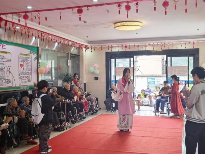 岁岁重阳,敬老情长。为传承中华民族重阳敬老的传统美德,10月29日上午,长沙民政职院财经管理学院团总支青年志愿服务队20名志愿者,走进长沙市雨花区怡养康年老年养护院,开展“时光音乐会”志愿活动,用青春活力与真诚陪伴,为老人们打造了一场充满温情的节日盛宴。