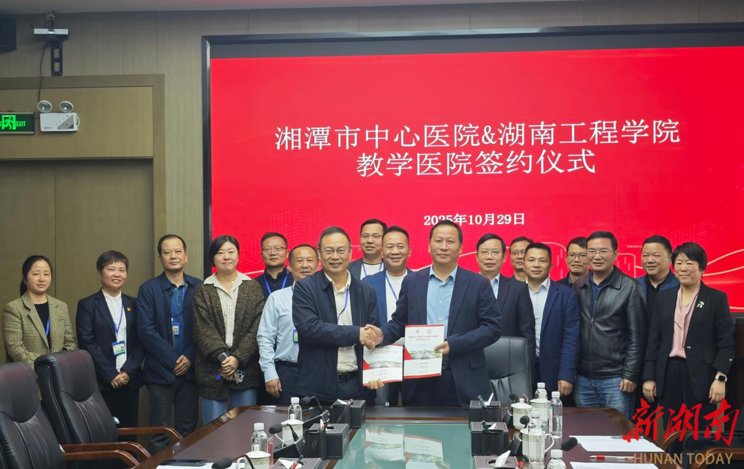 湖南日报·新湖南客户端10月31日讯(通讯员 李佳 杨欢)10月29日,湖南工程学院与湘潭市中心医院合作共建教学医院签约暨授牌仪式,在湘潭市中心医院举行。