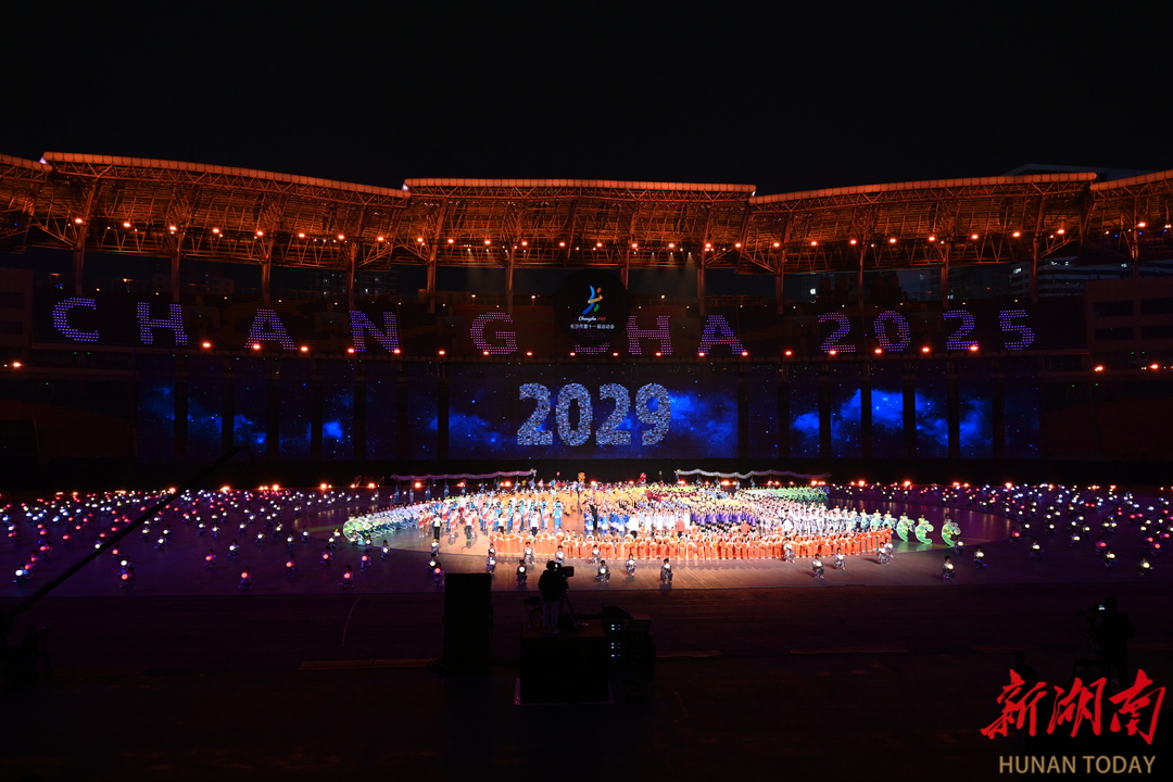 整场表演传递着“体育强则中国强,国运兴则体育兴”的时代强音,也彰显着长沙作为“最具幸福感城市”的蓬勃生机与无限可能。表演的尾声,在《明天会更好》的旋律中,长沙发出“2029全运会”的邀约,将全场气氛推向高潮。