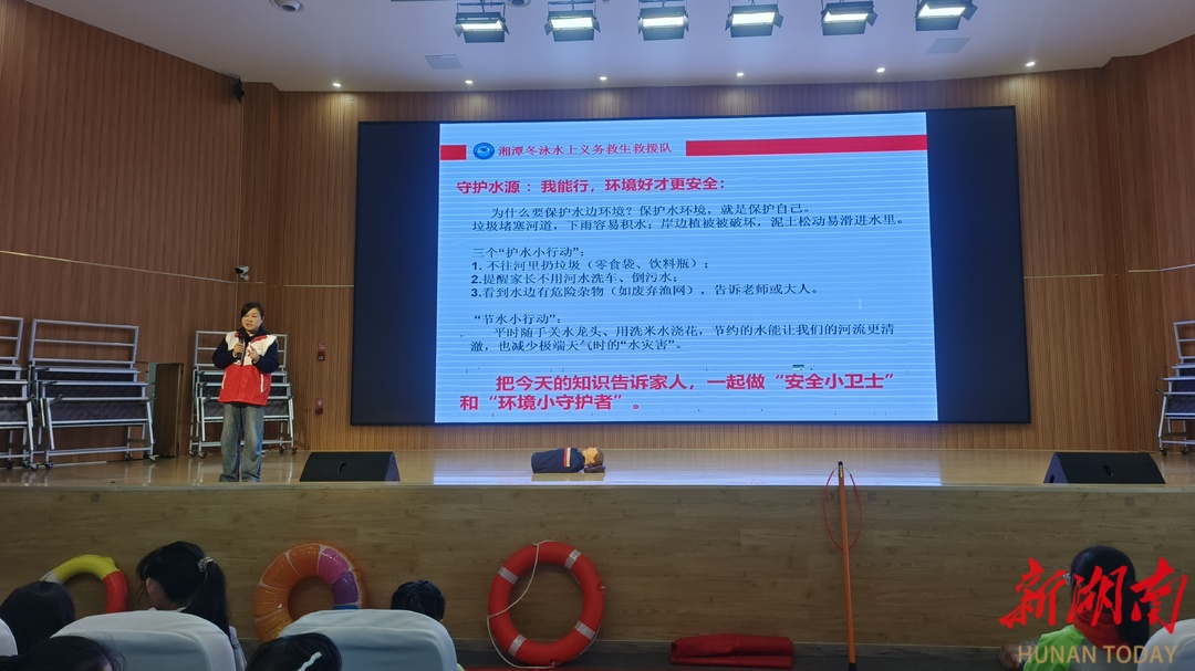 湖南日报·新湖南客户端讯(记者 蒋睿)在极端天气条件下,看似平静的水域也可能暗藏危险。为增强未成年人防溺水安全意识,近日,民建湘潭市委会、市政协民建界别委员工作室联合湘潭市冬泳协会水上义务救援队,走进岳塘区湖湘学校,举办了一场以防溺水安全应急处理为主题的公益讲座,为同学们带来实用的安全知识。