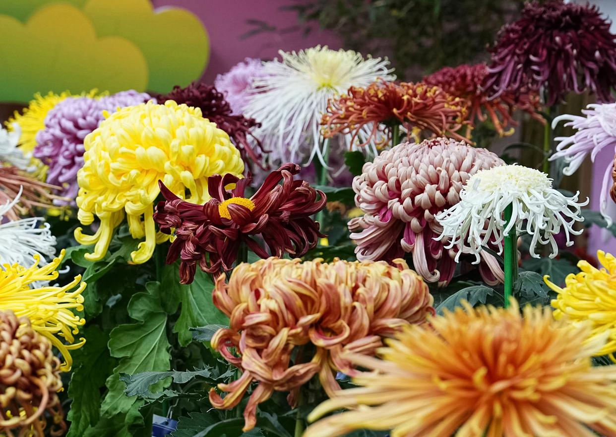 展览在世界花卉大观园植物科研实验室举行。记者提前探营,走进展厅,菊花层层叠叠,菊香扑面。案头菊饱满圆润小巧别致,新品种菊清新雅致,什锦菊则以缤纷色彩巧构景致,与意境深远的盆景小菊呼应,于方寸之间展现了中国园林的审美雅致。