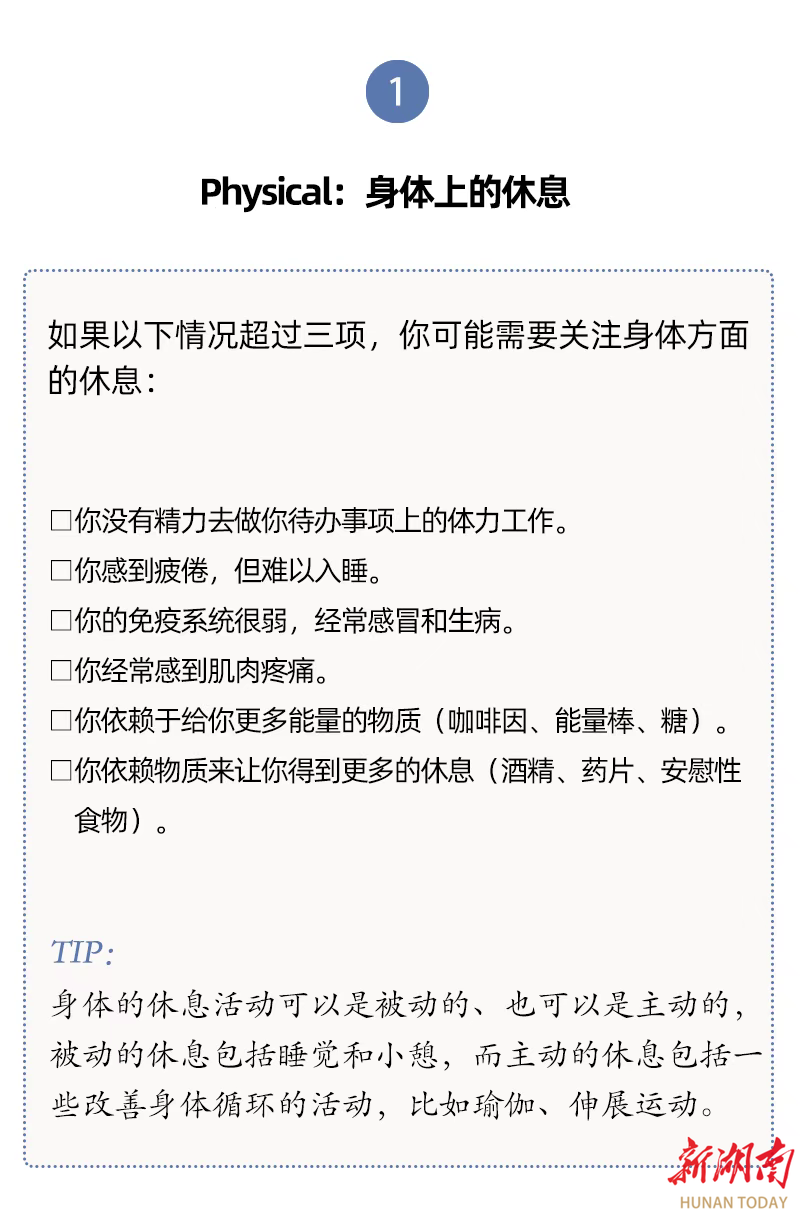 有内科医生根据研究和临床经验,总结出7种类型的休息方式,帮助我们确定最需要哪一种。快来自测一下。