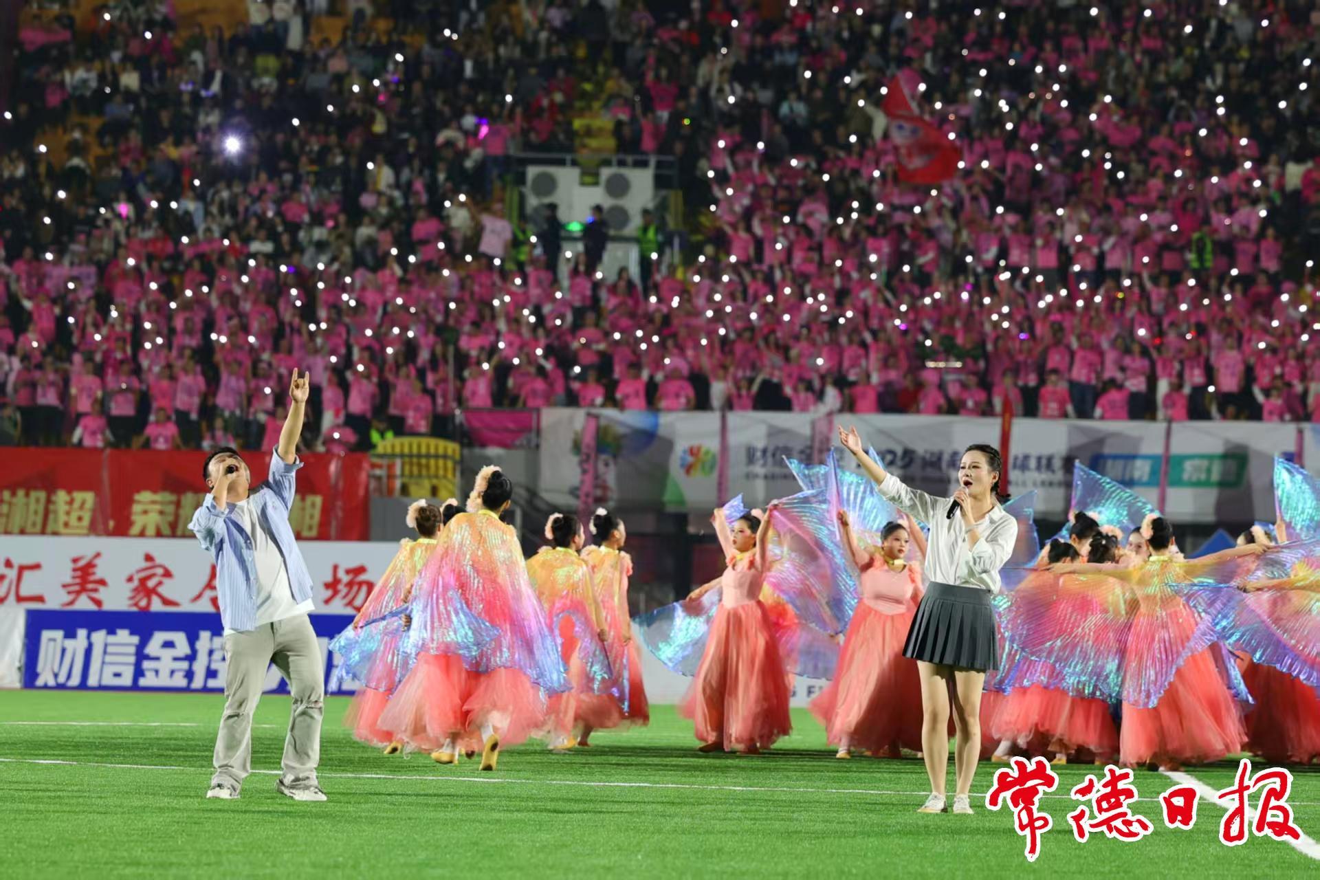 10月31日晚,常德市体育中心,“湘超”联赛点燃的不仅是绿茵场上的战火,更是汉寿干部群众干事创业的热情。当汉寿文旅快闪片在现场大屏幕震撼播放,当汉寿甲鱼成为常德队赠与怀化队的伴手礼,全县骨干与企业家代表在震天的助威声中,看到的已不仅是一场体育竞技,更是区域竞争的生动缩影,是“出手必出彩、完成必完美”的现实演绎。