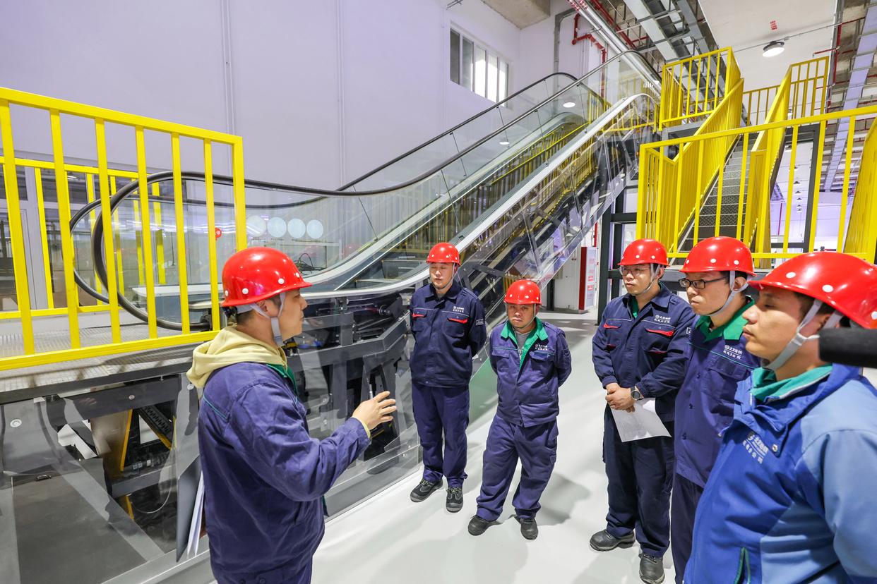 在北京地铁东坝实训基地,学员在电扶梯实训区学习维护保养知识。 “1+N”实训基地体系的建设及应用,将进一步提升地铁员工的应急处置、协同作业能力。后续,北京地铁公司将继续完善实训体系,培养轨道交通专业人才,为首都轨道交通事业高质量发展注入持续动力。