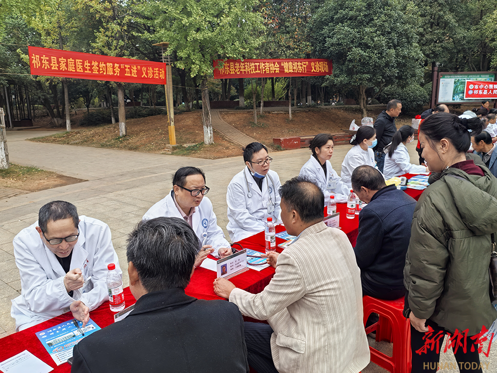 大众卫生报·新湖南客户端11月1日讯(通讯员 卢萍 何晓晓)11月1日,衡阳市祁东县洪桥街道社区卫生服务中心联合衡阳市中心医院集团祁东县人民医院、县老年科技工作者协会,在县体育文化公园,开展家庭医生签约服务“五进”(进机关、进企业、进学校、进社区、进乡村)大型义诊活动。深秋晨风,寒意袭人,却丝毫未减居民的参与热情,现场暖意融融。