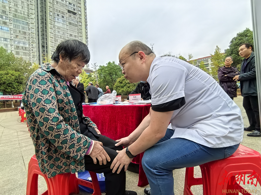另一边,县人民医院中医康复专家管慧敏、郑志强医师,正为两名外伤后膝关节疼痛、足踝活动不畅的居民,做针灸与手法康复治疗,围观的晨练居民纷纷排队咨询:“过去,一号难求的专家,如今在‘家门口’就能免费看病,太实在了!”在县老年科技工作者协会会员、退休老中医专家邹长青桌前,永昌街道的彭爷爷坐着轮椅慕名而来。邹主任细致问诊把脉,然后开具中药处方。彭爷爷笑着说:“邹主任是老名医,中医调理不伤根本,国家重视国粹真是好事!”