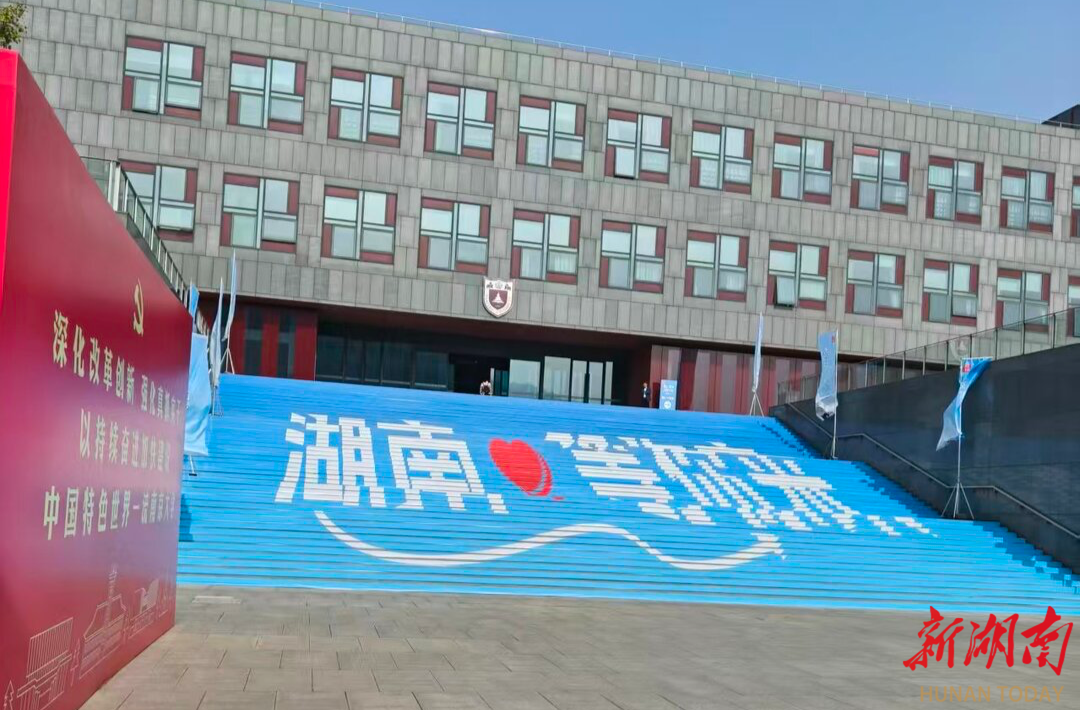 11月1日早上八点半,薄雾如轻纱般笼罩着南京大学仙林校区,初冬的微风带着些许凉意。而学校国际会议中心的台阶上,“湖南等你来”的巨幅标识已燃起一片橙红。