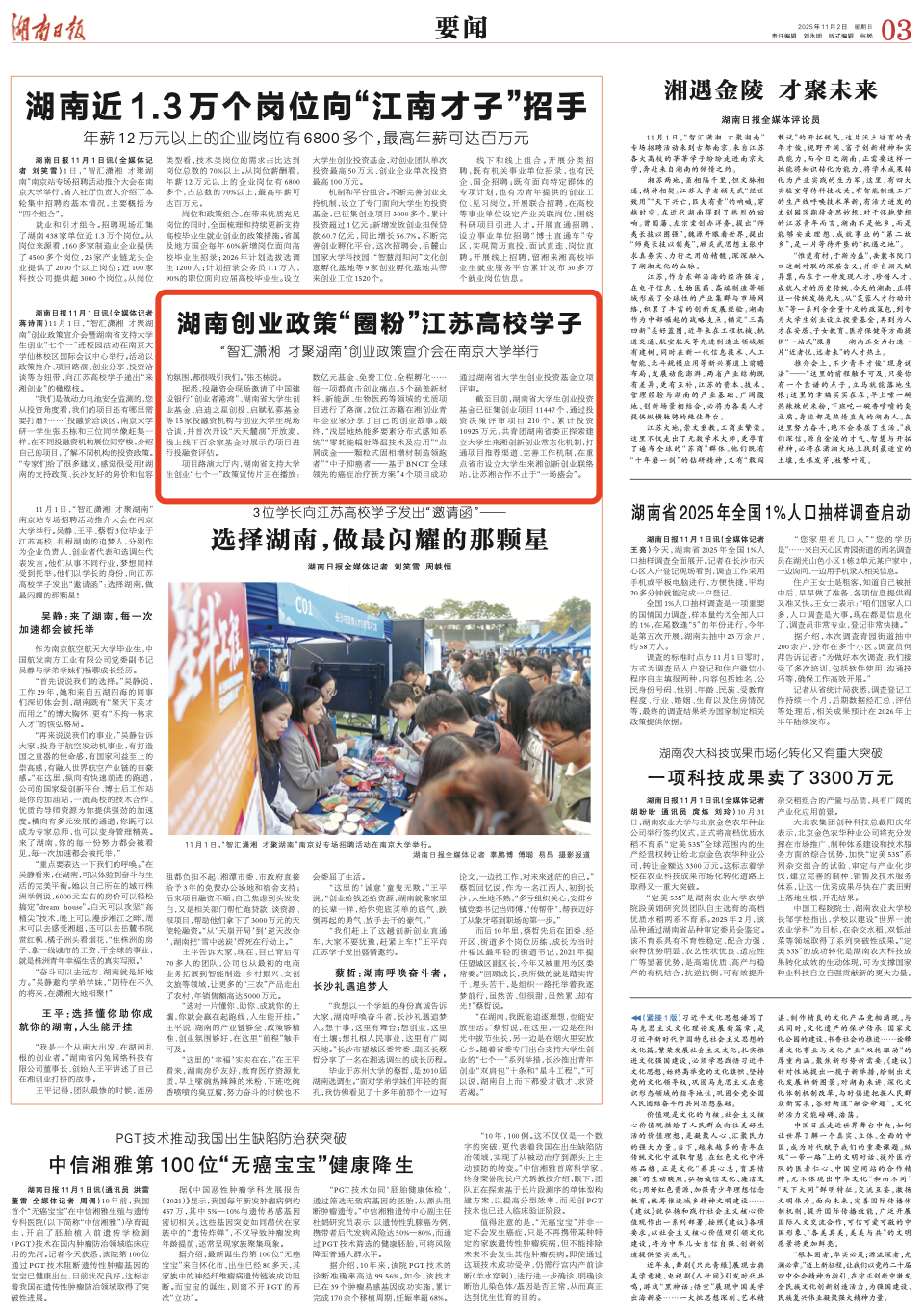 《湖南日报》2025年11月2日要闻03版