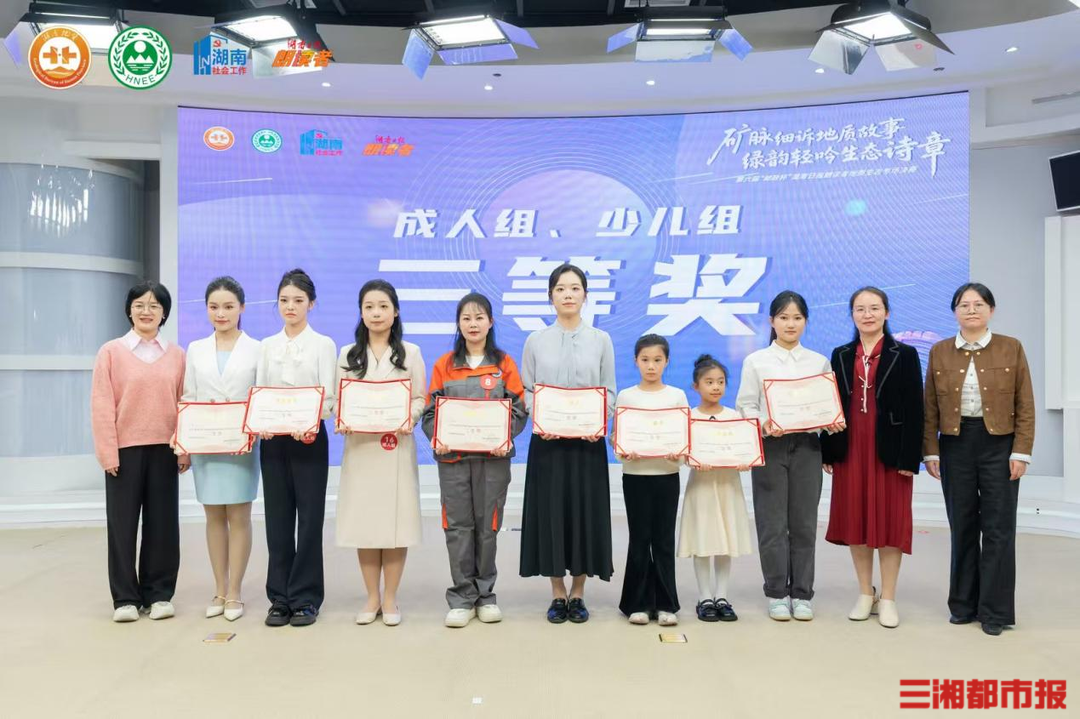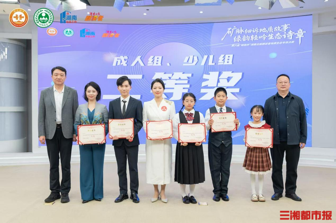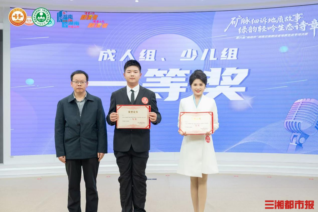 此次决赛,由湖南省地质院机关党委、湖南省生态环境事务中心、湖南省社会工作事务中心、湖南省地质院关工委、湖南省地质院妇联指导,湖南省地质院工矿所、水环所、生态所、遥感所、地信所、湖南省生态环境事务中心妇委会共同主办,湖南日报朗读者主题活动组委会承办,湖南省播音主持研究会、湖南省口才与演讲学会等全程评审。成年组评选出一等奖1名、二等奖3名、三等奖5名、优胜奖7名;少年组评选出一等奖1名、二等奖3名、三等奖3名。一等、二等、三等奖选手直接晋级第六届“邮政杯”湖南日报朗读者主题活动全省总决赛。
