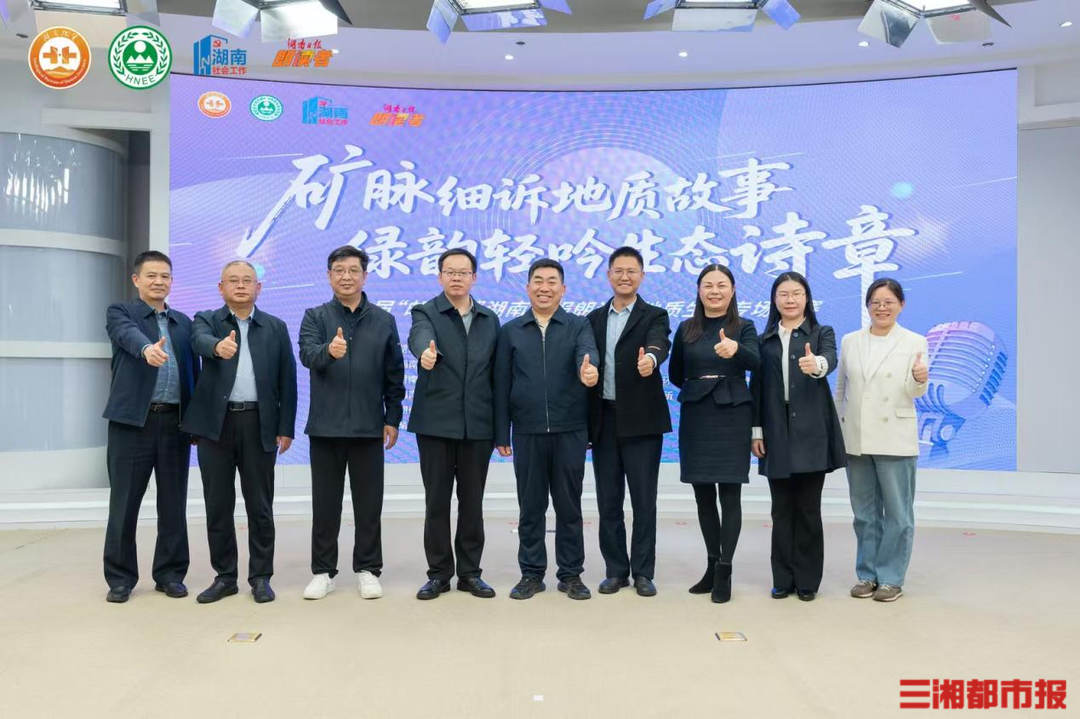 湖南地质院各院属单位结合自身工作实际,地信所刘艳婷朗读《从矿脉到绿脉的守护》、遥感所龚喜《展现湖南地质力量,拉近中非“心”的距离》等作品,展现党建与业务深度融合的成效。亲子共读情景朗诵《大地无疆 山河证我 “岩”续传奇 未来有我》,生动展现了地质生态工作者精神血脉的代际传承。据悉,“矿脉细诉地质故事 绿韵轻吟生态诗章”悦享主题活动暨第六届“邮政杯”湖南日报朗读者地质生态专场活动,以“党建+书香+科普+志愿”四位一体模式为载体,构建起行业精神传承的新路径。活动中通过红色故事分享、志愿服务讲述、环保知识宣讲等形式,推动党建工作与中心工作同频共振,实现了以书香赋能、以科普传声、以党建凝心的综合效应。