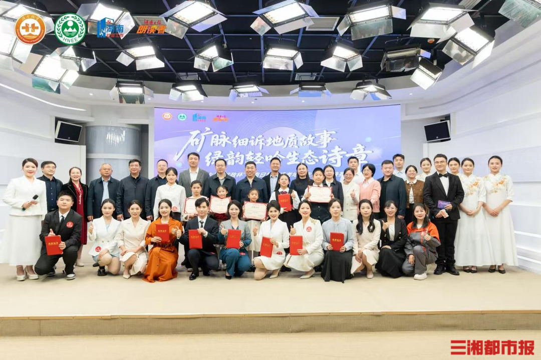“当钻机的轰鸣声在山谷间回响,当测绘仪的光标在岩层上闪烁……”舞台上,来自湖南省地质院生态所的选手张霓以“声”为桥,将观众的思绪带入地质、生态环境工作者跋山涉水的瞬间,让大家感受他们的初心与信仰。11月1日,长沙新湖南大厦演播厅内灯光璀璨、气氛热烈,第六届“邮政杯”湖南日报朗读者地质生态专场决赛在此拉开帷幕。地质、生态系统的朗读者们相继登台用声音诠释、用真情吟诵,为现场观众带来了一场融地质文化与生态文化于一体的视听盛宴。