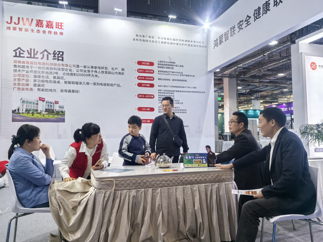 紧邻其旁的嘉嘉旺鸿蒙智联电暖桌展台同样热度不减。这款融合华为鸿蒙系统的智能家具,不仅具备安全健康的取暖功能,还实现了“一桌多用”的智慧升级——通过鸿蒙生态互联,可语音控制家居设备、查询健康资讯、联动适老化电器,为银发家庭打造出便捷、温暖的智慧生活空间。“它不仅是取暖桌,更是我们的‘智能生活助手’,操作简单,功能实用,很适合我们老年人。”现场体验的黄阿姨对其赞不绝口。