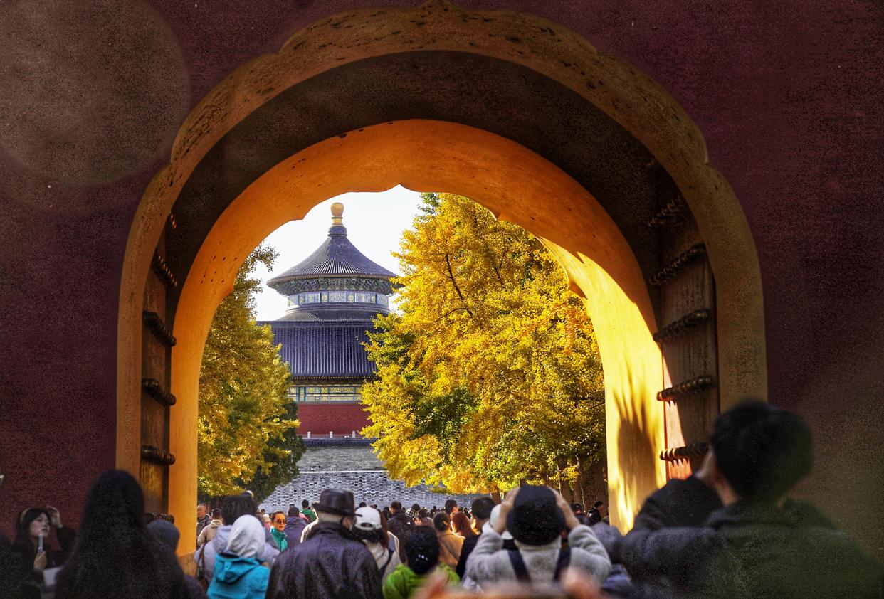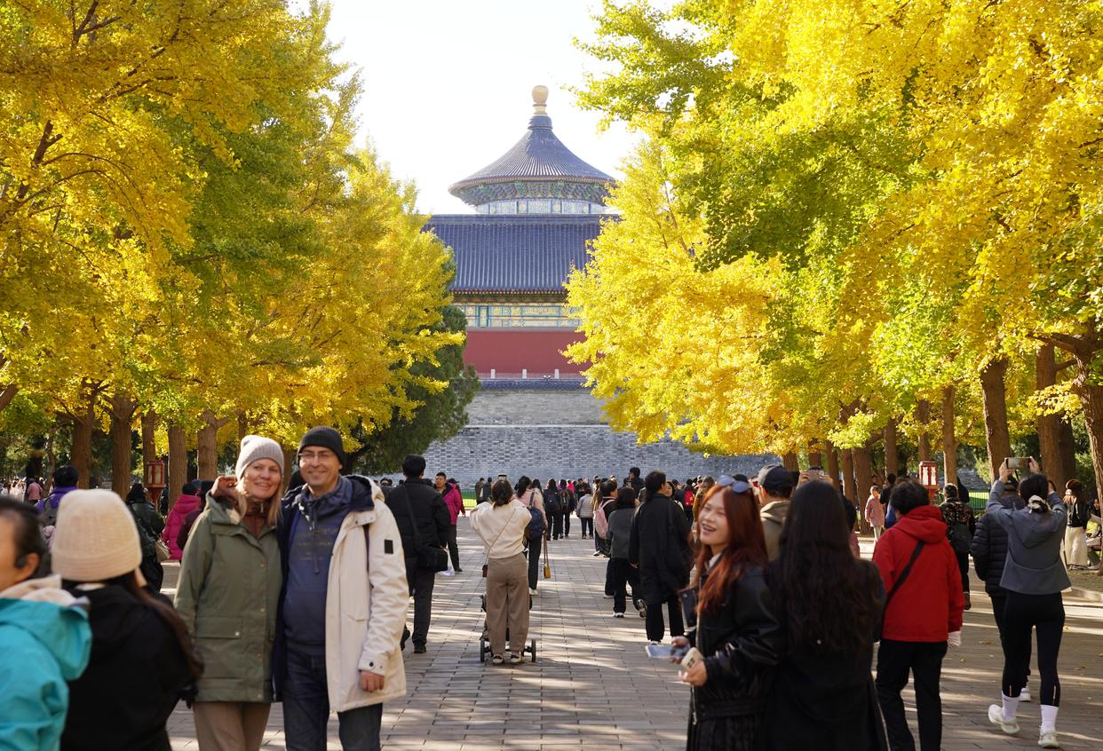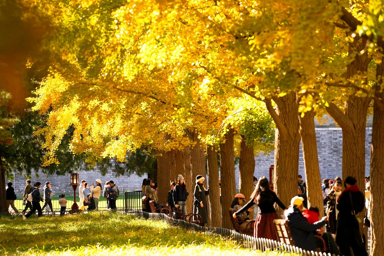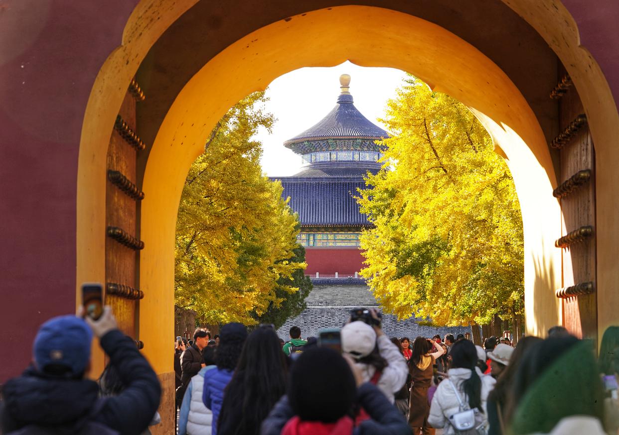 深秋时节,天坛公园银杏大道迎来最佳观赏期。大道两旁银杏树褪去翠绿,换上“金衣”,阳光穿透枝叶洒落,形成一条百米长的“秋色长廊”。漫步其间,金黄的叶片与红墙碧瓦、古柏苍松相映成趣,古老建筑群在银杏的映衬下更显庄重典雅。游客们驻足拍照,定格光影交错的美景。