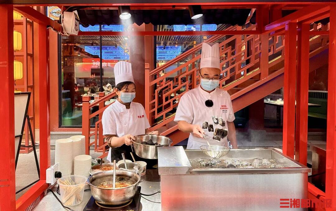 火宫殿香气缭绕,人潮涌动,长沙小吃与法式佳肴同台飘香。“臭豆腐遇上鹅肝”成为全场“顶流”——外酥里嫩的臭豆腐与细腻醇厚的鹅肝在舌尖交融,出其不意又相得益彰。“我们现在不单只是做美食,而是把美食变成一种文化。” 国家级非遗长沙臭豆腐第四代传承人周后目向记者介绍,“为了体现交流,我们还特地推出这道新的菜品——‘臭豆腐遇上鹅肝’。让臭豆腐和鹅肝对话,其实是让两种生活方式彼此看见。”