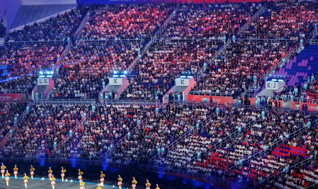 除了粤剧、咏春、麒麟等广为人知的传统元素外,广绣的精美纹样、广珐琅的流光溢彩、嵌瓷的立体拼贴等散落在民间的文化符号,经过创新设计后焕发新意,在开幕式舞台上惊艳亮相。