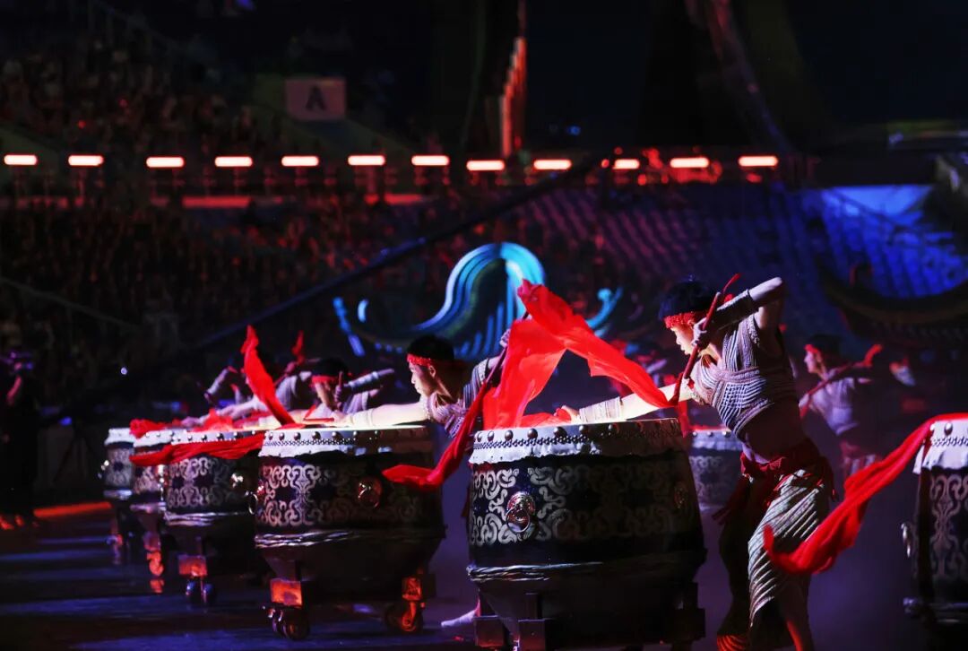 醒狮表演与AIGC、VR技术相互交融,英歌锣鼓搭配全息投影,龙舟竞渡场景通过AR技术“划”入观众席。