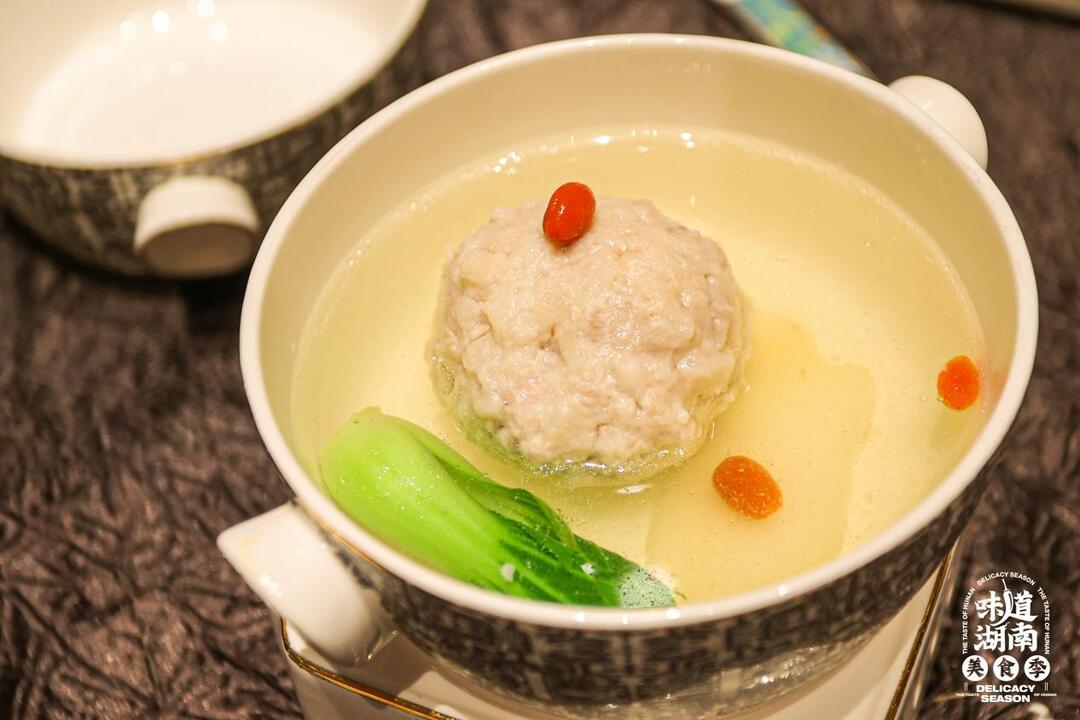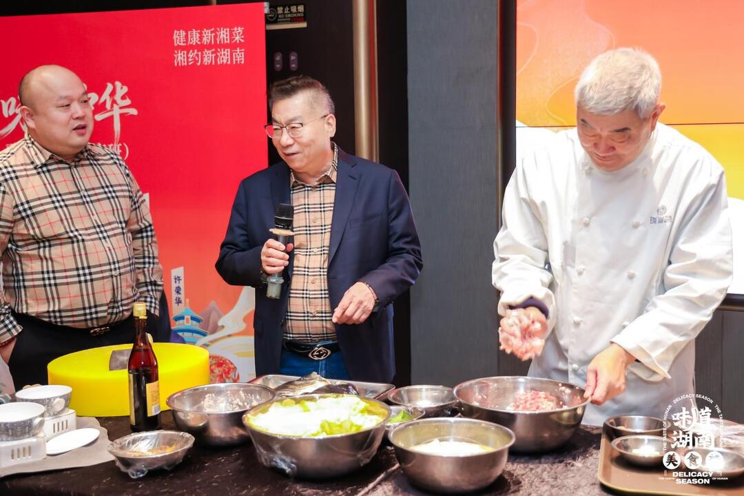 随后,孟宪斌现场教授黄精狮子头与当归拆烩鱼头两道创新菜品。他在制作中融入药食同源理念,以黄精提升狮子头的养生价值,用当归赋予鱼头温润口感,展现了京菜“精细养生”与湘菜“醇厚鲜香”的巧妙融合。