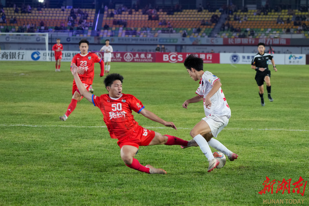 11月2日,“湘超”联赛第8轮,主场作战的张家界队0-5惨败衡阳队。这场失利暴露出球队攻防两端的问题,也对士气造成打击。如何尽快调整状态、总结经验,成为张家界队面临的关键任务。此役过后,球队在积分榜上的形势更加严峻。湖南日报·新湖南客户端记者 向韬 摄影报道