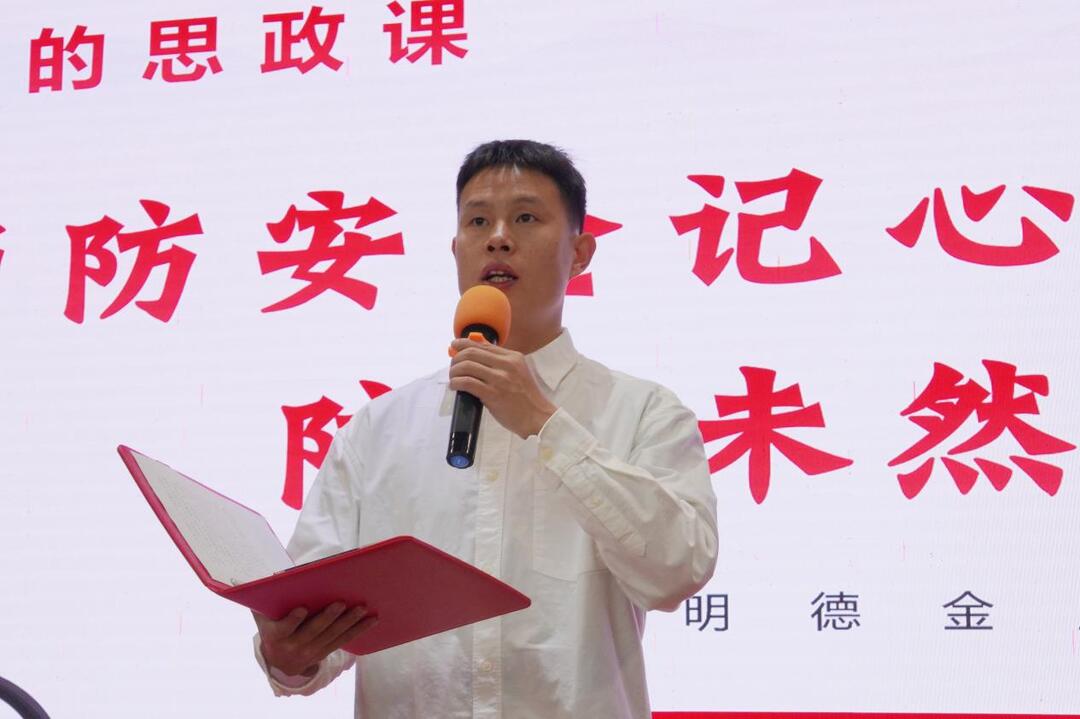 本次国旗下思政课由该校老师熊卓豪主讲。他以长沙电信大厦发生火灾这一真实案例为引,深刻剖析了细微的安全隐患可能导致的严重后果,进而告诉大家:消防安全,预防是关键,核心在于将安全意识融入日常,转化为自觉行动。在此基础上,他向全体同学提出三点期望:首先要做消防安全知识的“学习者”,不仅要了解消防器材的使用方法,更要掌握正确的报警流程和逃生技巧;其次要做安全行为的“践行者”,从规范使用电器到保持消防通道畅通,让每一个细节都成为安全的保障;最后要做安全理念的“传播者”,通过“教育一个学生,带动一个家庭,影响整个社会”的方式,让安全的种子在更广阔的天地生根发芽。最后,熊老师以“居安思危,思则有备,有备无患”勉励全体师生,希望大家将安全意识内化于心、外化于行,共同守护校园的美丽与生命的宝贵,让平安与幸福常驻身边。