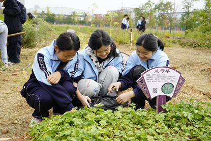课堂上,学生们围绕不同药用植物展开探索:在益母草植株前,大家对照介绍卡仔细观察叶片形态与花序特征,将“活血调经”的药用功效与实物紧密关联;凑近薄荷枝叶时,清新的清凉气息扑面而来,让“疏散风热、清利头目”的药性不再是抽象概念;采摘秋葵、辣椒等兼具药用价值的植物时,学生们手持工具轻剪枝叶,在实操中掌握药材采摘的基本技巧,同时通过分类收纳,强化对不同药材特征的记忆。