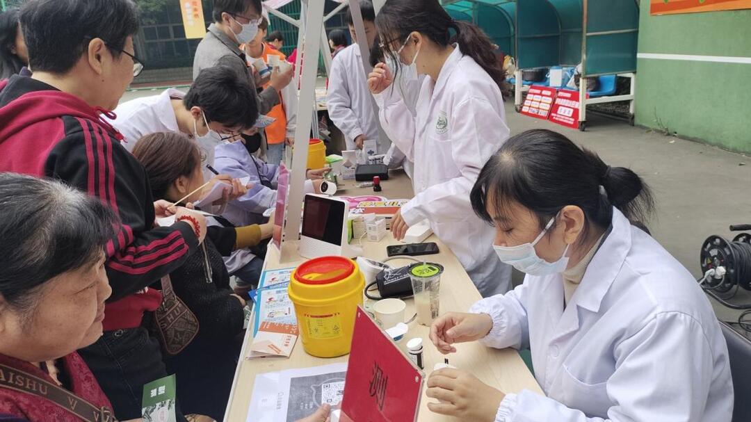 活动现场,党员教师率先垂范,带领社团学子携带血压计、血糖仪等专业医疗设备提前部署到位,有序开展健康服务。党员同志们秉持严谨负责的工作态度,逐一对老人进行血压测量、血糖检测,详细询问日常饮食、作息规律及既往病史,认真做好每一项健康数据记录。针对检测中发现的血压、血糖数值异常情况,党员教师结合专业医学知识,为老人们提供个性化饮食调理、适度运动、慢病管理等健康指导,同时将核心注意事项手写于便民小卡片上,方便老人随时查阅,用细致服务筑牢老年群体健康防线。