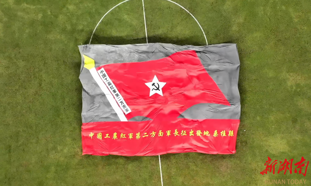 湖南日报·新湖南客户端11月4日讯 (通讯员 甘政)11月2日,张家界贺龙体育馆内气氛热烈,2025年湖南省足球联赛张家界赛区张家界队与衡阳比赛现场,一面约500平方米的巨幅旗帜伴随着桑植民歌《马桑树儿搭灯台》的深情旋律缓缓展开,中国工农红军第二方面军军旗与“中国工农红军第二方面军长征出发地——桑植县”的字样赫然呈现,瞬间点燃全场激情,将整个赛事活动推向高潮。