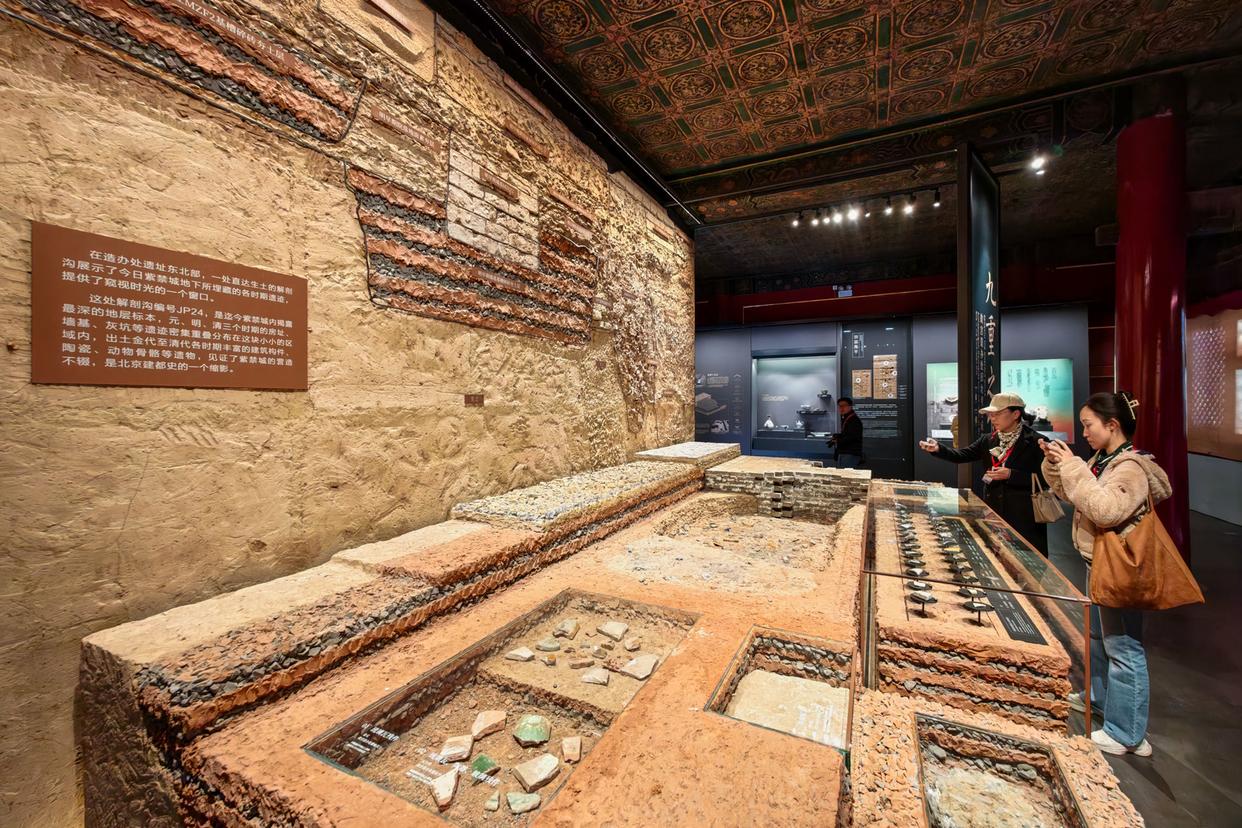“这一眼,700年。”故宫博物院考古部主任徐海峰诗意形容这面土墙,“北京是典型的古今重叠型城址。我们熟悉的红墙黄瓦、青砖地面下,密布着几个时代的营造、改建、废弃的痕迹。”