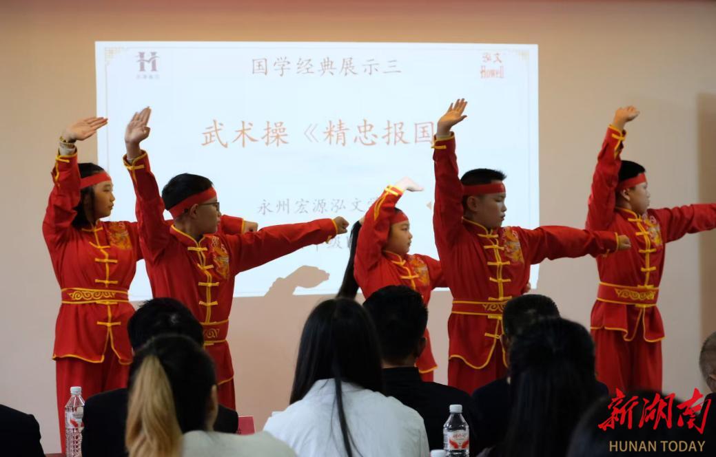 10时许,传统文化节目表演与沙画展示轮番上演:学生代表带来的《论语》《诗经》《离骚》《诫子书》经典诵读声韵铿锵,武术表演《精忠报国》势贯长虹;沙画师以沙为墨、以手为笔,在光影间勾勒出“仁义礼智”等文化符号,将抽象的经典转化为直观的艺术享受,赢得现场阵阵掌声。