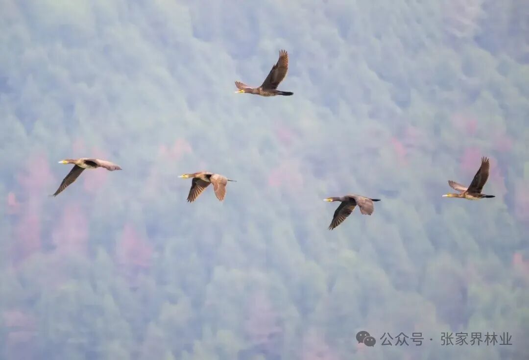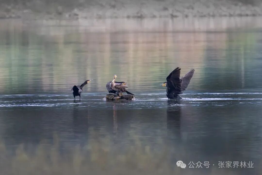 张家界澧水河畔惊现18只野鸬鹚 生态绿洲成候鸟迁徙驿站
