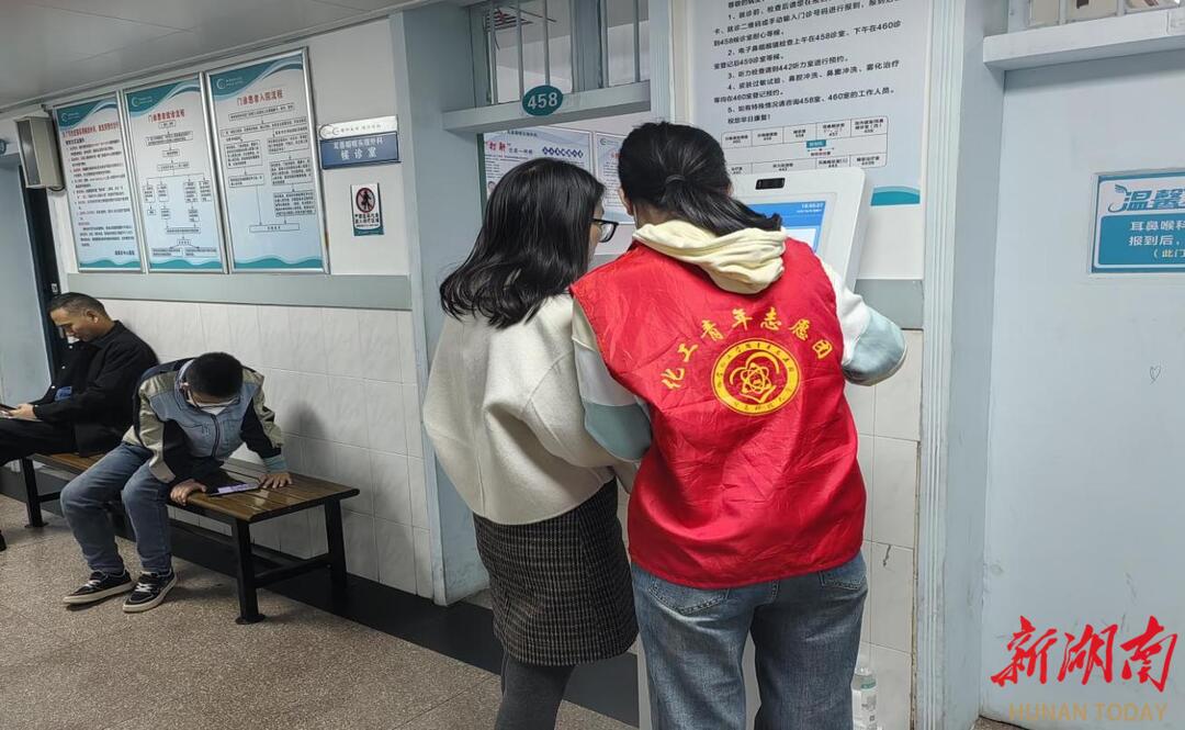 新湖南客户端11月4日讯(通讯员 印后杰 李思倚)清晨的阳光洒落在湘潭市中心医院,门诊大厅里早已聚满了前来就诊的患者。人群中,几抹活跃的“志愿红”格外醒目——他们是来自湖南科技大学化学化工学院的青年志愿者,正耐心细致地为患者提供导诊服务。自2018年起,该学院持续组织学生赴湘潭市中心医院开展爱心导诊,将思政教育的课堂从校园延伸至社会一线,在实践中引导学生成长成才。